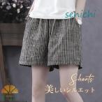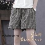 ショートパンツ レディース ハーフパンツ ウエストゴム 綿麻 短パン 半ズボン ゆったり ストライプ柄 カジュアル 通気性 着痩せ キレイめ 通学