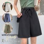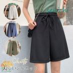 ショートパンツ レディース ハーフパンツ ウエストゴム 短パン ゆったり 無地 カジュアル ワイド ルームウェア 着痩せ キレイめ 通学 学生