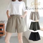ショートパンツ レディース ハーフパンツ ウエストゴム 短パン ゆったり 接触冷感 無地 ハイウエスト ワイド 着痩せ キレイめ