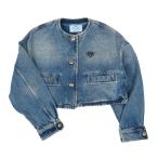 プラダ トライアングル ロゴ ノーカラー デニムジャケット GFB297 レディース ブルー PRADA 中古 【アパレル・小物】