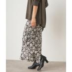 (S~L対応)(黒)アーティスティックな花のティアードミディアムスカート