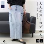 ロングスカート デニムスカート カーゴ 後ろウエストゴム ストレッチ 春夏秋冬 大人カジュアル 30代 40代 ストレッチデニムカーゴスカート メール便不可