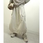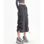 スカート レディース ボトムス カーゴ カーゴスカート Iライン ロングスカート マキシ ウエストゴム ポケット 無地 ゆったり ミリタリー ナイロン