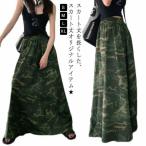 迷彩 チノ カーゴ ロングスカート 綿 ポケット フレアー Aライン ミリタリー マキシ かわいい 森ガール 大人カジュアル ナチュラル レディース