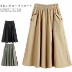 レディース きれいめ ウエストゴム ギフト ロングスカート カジュアル フェミニン おしゃれ 体型カバー カーゴスカート ナチュラル ゆったり シンプル 通勤 通学 大人女性 大きいサイズ 無地 ポケット付き リラックス Aラインスカート