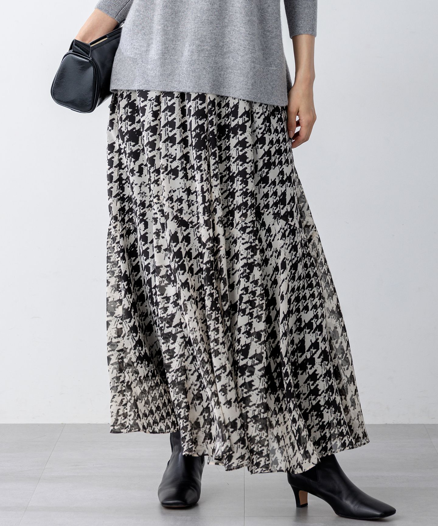 23区 S(ニジュウサンク エス)/【洗える】ハウンドトゥースアートプリント ギャザー スカート