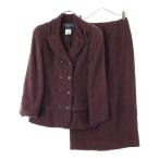 CHANEL(シャネル) サイズ:38 98AW セットアップ ウール ココマークボタン ギャザーカラー ダブルブレスト テーラードジャケット タイト ロングスカート レディース P12240V06940【中古】【程度B】【カラーブラウン】【取扱店舗BRING京都河原町店】