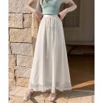 スカート レディース マキシスカート ロングスカート シフォンスカート フレアスカート ウエストゴム 透け感 無地 お洒落 キレイめ こなれ感 リゾート 海辺 旅行 ボトムス 夏新作