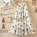 スカート ロング シフォン プリーツ レディ―ス ボトムス プリーツスカート ゴム チェック Aライン 花柄