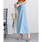 デニムスカート ベルト付シフォンプリーツ切替デニムスカート