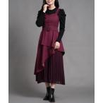 ジャンパースカート スェードアシメトリー切替シフォンプリーツジャンスカ
