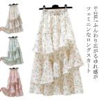 フレアスカート シフォン 花柄ロングスカート ロングスカート フラワープリント マキシ 体型カバー 花柄ロングスカート スカート 小花柄 ロング丈 ス