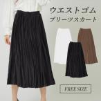 スカート ひざ丈 秋 冬 春 ブラウン 黒 プリーツ レディース ロング丈 シフォン ウエストゴム 無地 フレアスカート
