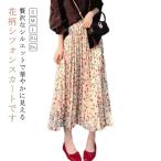 花柄ロングプリーツスカート フラワープリント シフォン スカート きれいめ 小花柄 ロング丈 女子会 デート