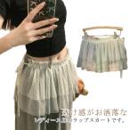 フェイクレイヤード チュール レイヤード 付け裾 きれいめ 重ね着風 つけ裾 透け ゆったり スカート ボックス シフォン 重ね着 レディース 腹巻