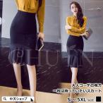 着丈50cm/60cm/70cm スカート タイトスカート ビジネス スリット入り ウエストゴム ミニスカート 膝丈 レディース 黒 通勤 面接 仕事用 スリム シフォン ハイウエスト ボトムス フォマール オフィス ブラック
