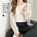 シフォンブラウス レディース トップス シャツ 長袖ブラウス 丸ネック フレア シフォン 通学通勤 無地 可愛い 春コーデ 夏物 春服 秋物 ブラウス プルオーバー