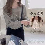 重ね着 カットソー レディース シースルー シアー 長袖 Tシャツ トップス インナー 春夏 秋 透け シフォン 重ね着 ブラウス