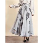 スカート クラシックフラワープリント シフォンスカート/洗える