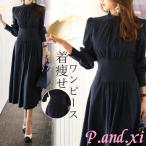 ワンピース レディース ドレス ロングワンピース 無地 Aライン ハイウエスト 着痩せ 卒業式 入学式 女子会 通勤 フォーマル かわいい