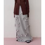 スカート ラメシフォン大花柄フレアスカート