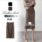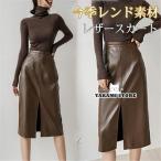 レザースカート レディース ロング丈 タイト ミモレ丈 フェイクレザー スリット ビジネス ハイウエスト PU 秋 冬 着痩せ 通勤 高級感 おしゃれ