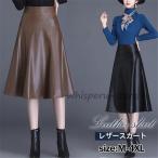 レザースカート レディース ミモレ丈 Aライン 秋 冬 PU ハイウエスト おしゃれ フェイクレザー 革スカート 着痩せ 通勤 オフィス OL