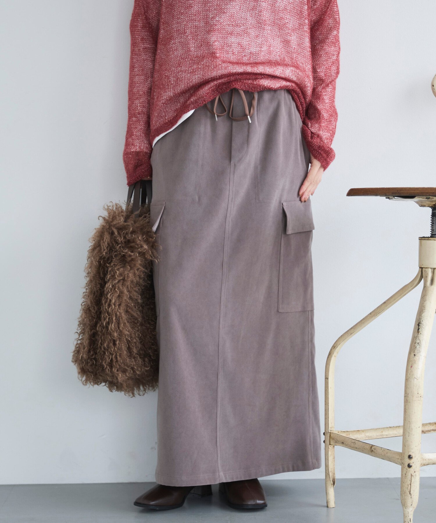DouDou 【WEB限定】マシュマロスエードタイトスカート ドゥドゥ スカート ロング・マキシスカート グレー ピンク ブラウン【送料無料】