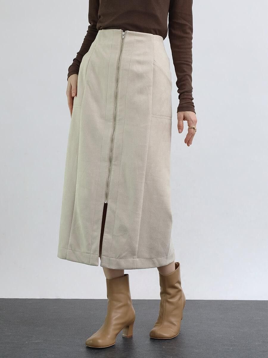 Aga フロントジップフェイクスエードライクスカート ラシュッド スカート その他のスカート ホワイト ブラック【送料無料】