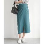 スカート UNDOVE「SMART ECO JERSEY」異素材切替スカート (ロングスカート/タイト/リブ使い/ポケット付/防シワ/ストレッチ/イー