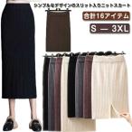ニットスカート タイトスカート リブ スリット レディース ペンシルスカート ナロースカート きれいめ 細身 スリム 選べる着丈 膝丈 ウエストゴム