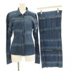 プリーツプリーズ イッセイミヤケ セットアップ デニム転写 パッチワーク シャツ ブラウス 長袖 タイトスカート ロング 1 4 青