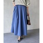 【SALE/45%OFF】grove 透け感がムードある 大人のタックギャザースカート グローブ スカート ロング・マキシスカート グレー ブルー