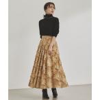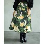 スカート 「セットアップ対応」モダンフラワープリントタックフレアスカート