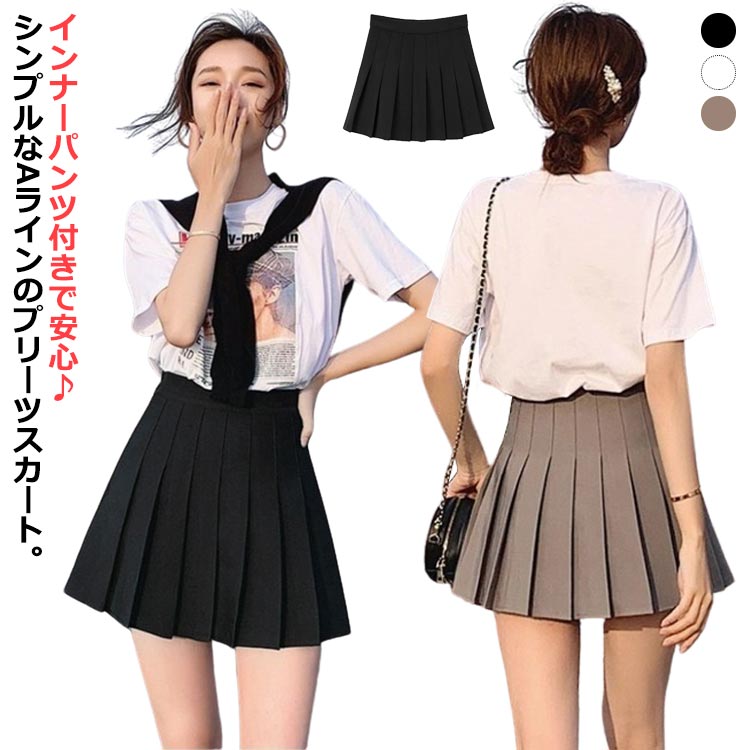スカート 膝上 Aライン レディース ボトムス カジュアル 着回し ショート丈 ミニスカート 無地 インナーパンツ付き タック プリーツスカート ボリュームスカート シンプル フレア 韓国 大人 春 夏 秋 カジュアル デイリー 普段使い お出かけ プリーツスカート