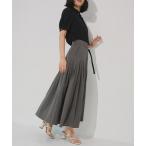 スカート リボンベルトタックラップスカート(セットアップ可)