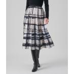 スカート チェックプリントタックギャザーフレアスカート