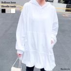 チュニック 長袖 ワンピース ミニ バルーンヘム パーカー プルオーバー カットソー Tシャツ 大きいサイズ フレア トップス コットン 綿