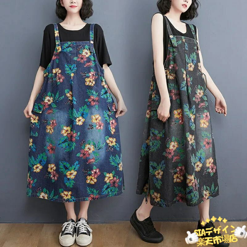 【全品2点で5%OFF】ジャンスカ ワンピース レディース デニムジャンパースカート ジャンスカ オーバーオール チュニック 丈 ノースリーブワンピース サロペット スポーティーな肩紐 花柄 春 夏 ン キレイめ カジュアル 学院風 通学