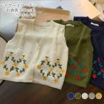 ベスト レディース 秋冬 ニットベスト 前開き カーディガン アウター トップス 花柄 ニット リブ ケーブル編み リブ編み 羽織 ゆったり ノースリーブ Vネック