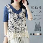 ベスト レディース 春夏 ジレ レース おしゃれ 大きいサイズ 透かし編み トップス 花柄 ノースリーブ サマーニット プルオーバー Vネック レイヤード 重ね着