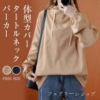 パーカー レディース 秋 フード付き トップス 長袖 プルオーバーパーカー ハイネックパーカー 無地 ハイネック ゆったり 体型カバー ポケット付き カジュアル