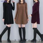ニットワンピース レディース 40代 秋冬 長袖ワンピース 黒チュニック ショット丈Aラインスカート ニットトインナー オシャレ 大人 ゆったり