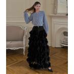 スカート ツイード切替フリルチュールフレアスカート