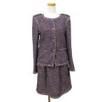 シャネル CHANEL スーツ ココマークボタン ツイード スカート サイズ34 パープル