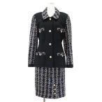 シャネル ジャケット スーツ CHANEL ブラック シルク コットン ノーカラー ツイード スカート カール・ラガーフェルド作品 40 42