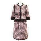 貴重な激レア!シャネル 極上やわらか!ふわふわラビット ファー トリム・ラズベリー ツイード ジャケット スカート スーツ 38 カール限定