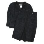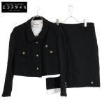 シャネル スーツ セットアップ CHANEL ブラック ウール ツイード ジャケット トップス スカート カール・ラガーフェルド 貴重 超美品 40 42