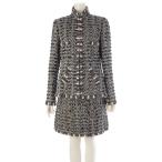 シャネル メタリック ツイード スタンドカラージャケット スカートセットアップ P44044 ブラック×ゴールド 42 / 40【中古】