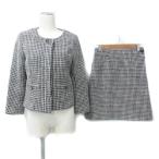 ナチュラルビューティーベーシック フォーマル セットアップ 上下 ノーカラージャケット 台形スカート ツイード 上L 下M 白 黒 レディース